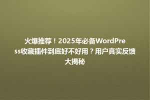 本文标题:提升网站吸引力!2025年最佳WordPress设计插件你绝不能错过